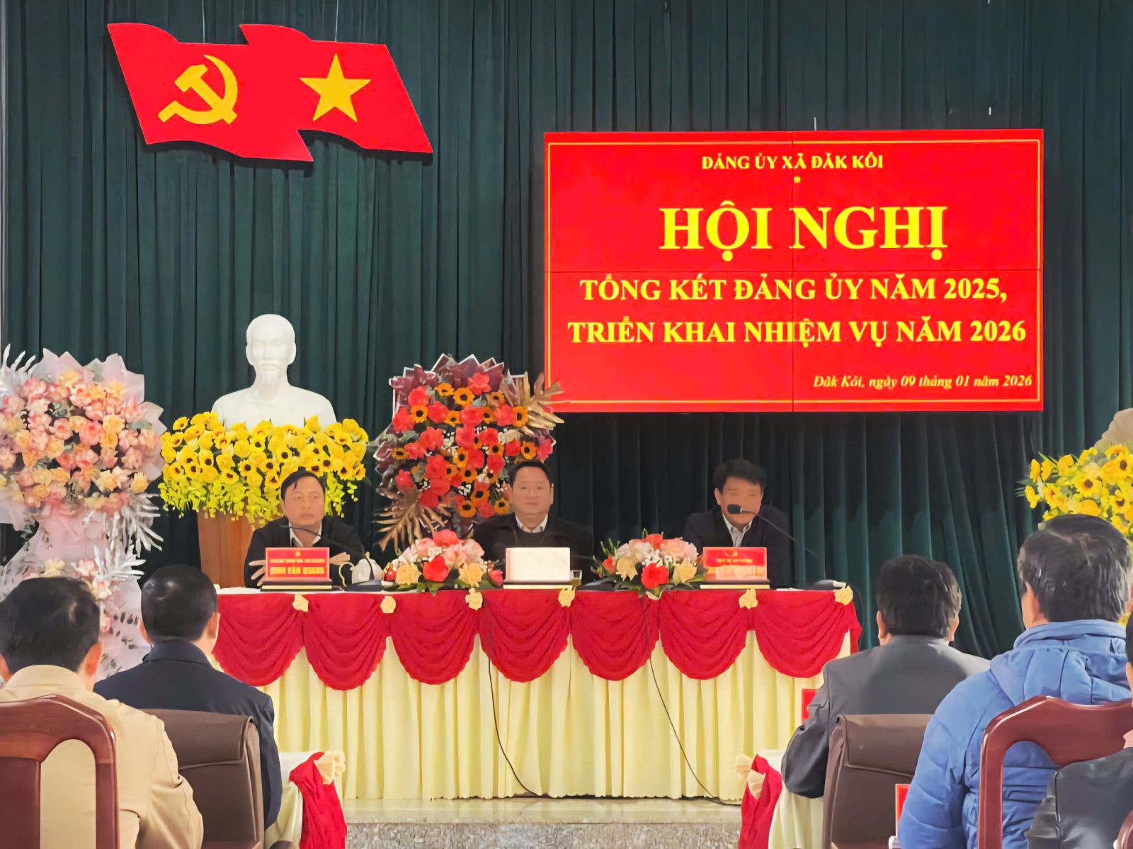 Sáng ngày 09/01/2026, Đảng ủy xã Đăk Kôi tổ chức Hội nghị tổng kết công tác năm 2025, triển khai nhiệm vụ năm 2026. Hội nghị diễn ra tại Hội trường Trung tâm Chính trị – Hành chính xã, dưới sự chủ trì của Thường trực Đảng ủy, tham dự hội nghị có các đồng chí Ủy viên Ban Chấp hành Đảng bộ xã khóa I, nhiệm kỳ 2025–2030, bí thư, phó bí thư các tổ chức Đảng trực thuộc cùng toàn thể cán bộ, công chức các cơ quan chuyên trách tham mưu, giúp việc Đảng ủy.