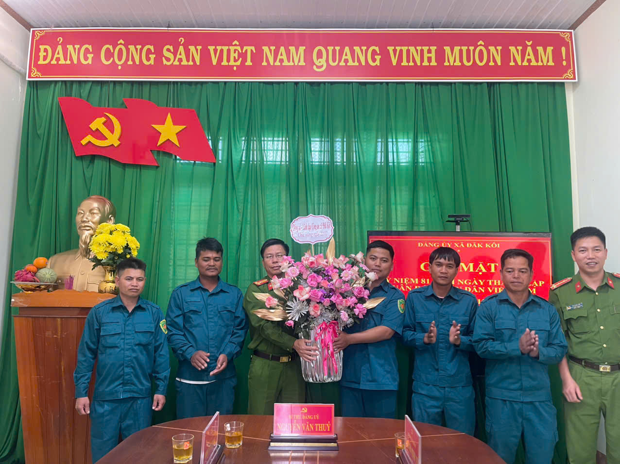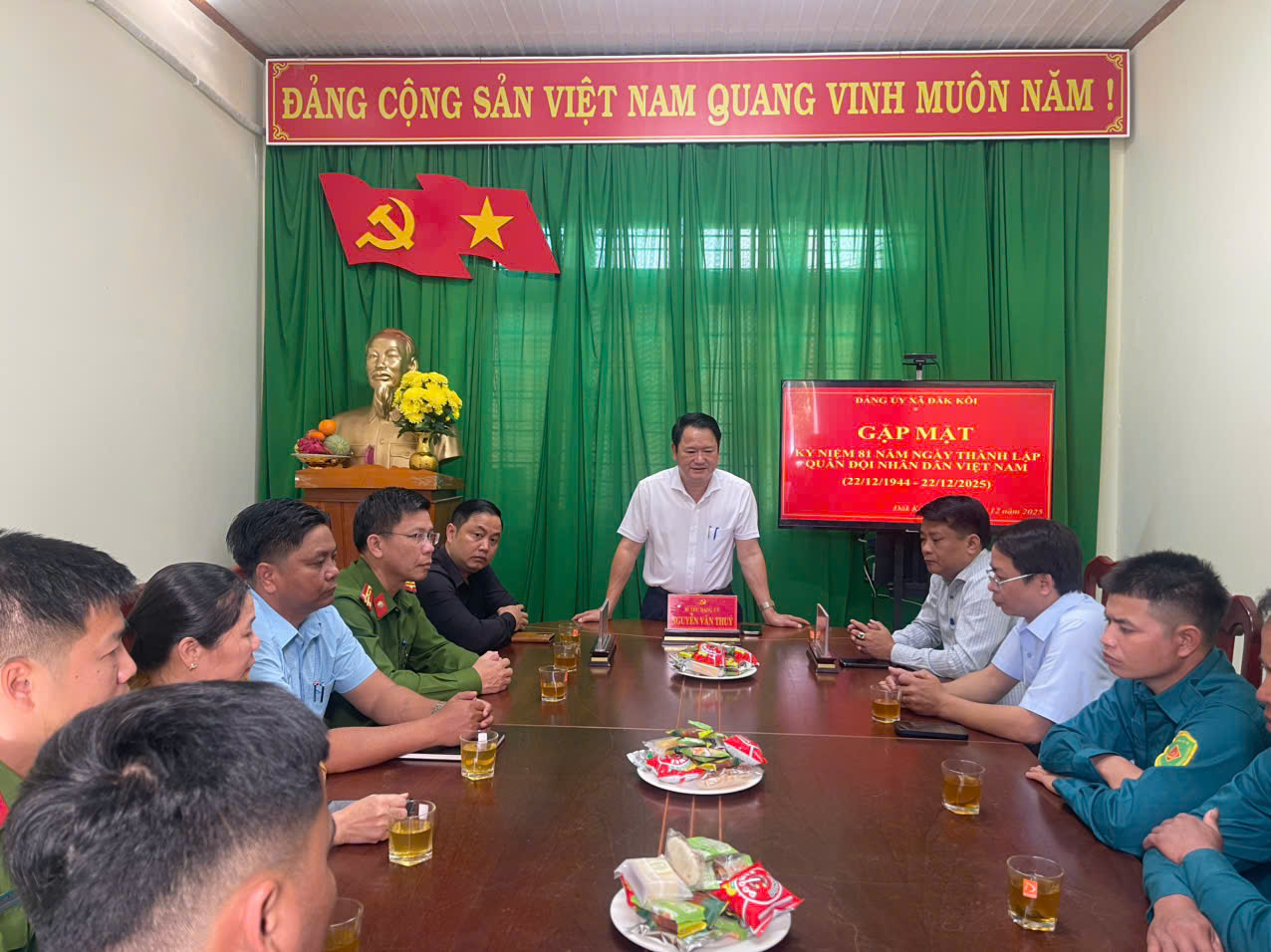 Nhân kỷ niệm 81 năm Ngày thành lập Quân đội Nhân dân Việt Nam (22/12/1944 – 22/12/2025), chiều ngày 22/12, Đảng ủy, HĐND, UBND, Ủy ban MTTQ Việt Nam xã tổ chức buổi gặp mặt, tặng hoa chúc mừng cán bộ, chiến sĩ Ban Chỉ huy Quân sự xã Đăk Kôi.