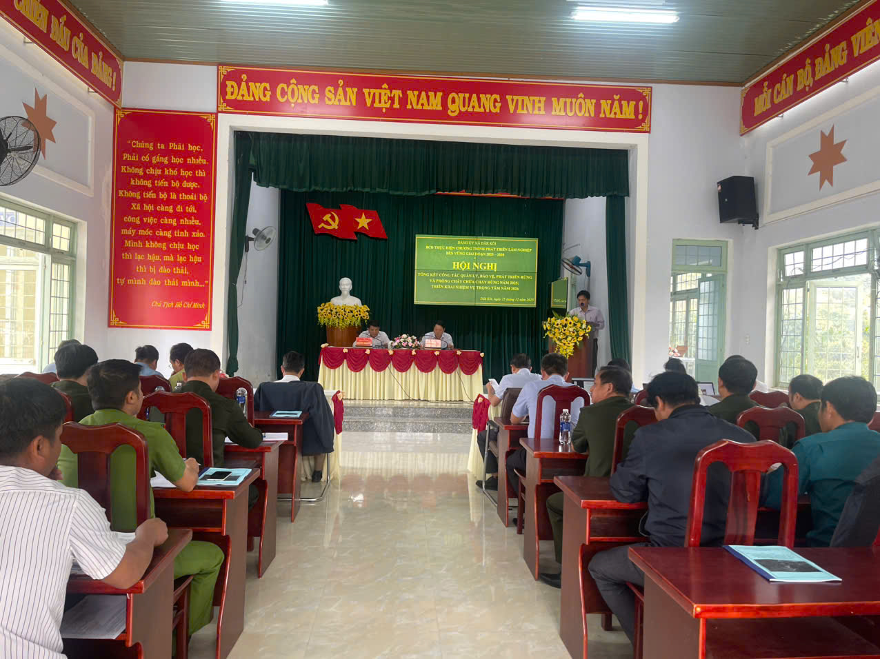 Chiều 25/12, Ban chỉ đạo thực hiện phát triển lâm nghiệp bền vững giai đoạn 2025-2030 xã Đăk Kôi tổ chức Hội nghị tổng kết công tác quản lý, bảo vệ, phát triển rừng và phòng cháy, chữa cháy rừng năm 2025; triển khai phương hướng, nhiệm vụ năm 2026 tại hội trường Trung tâm hành chính xã Đăk Kôi.